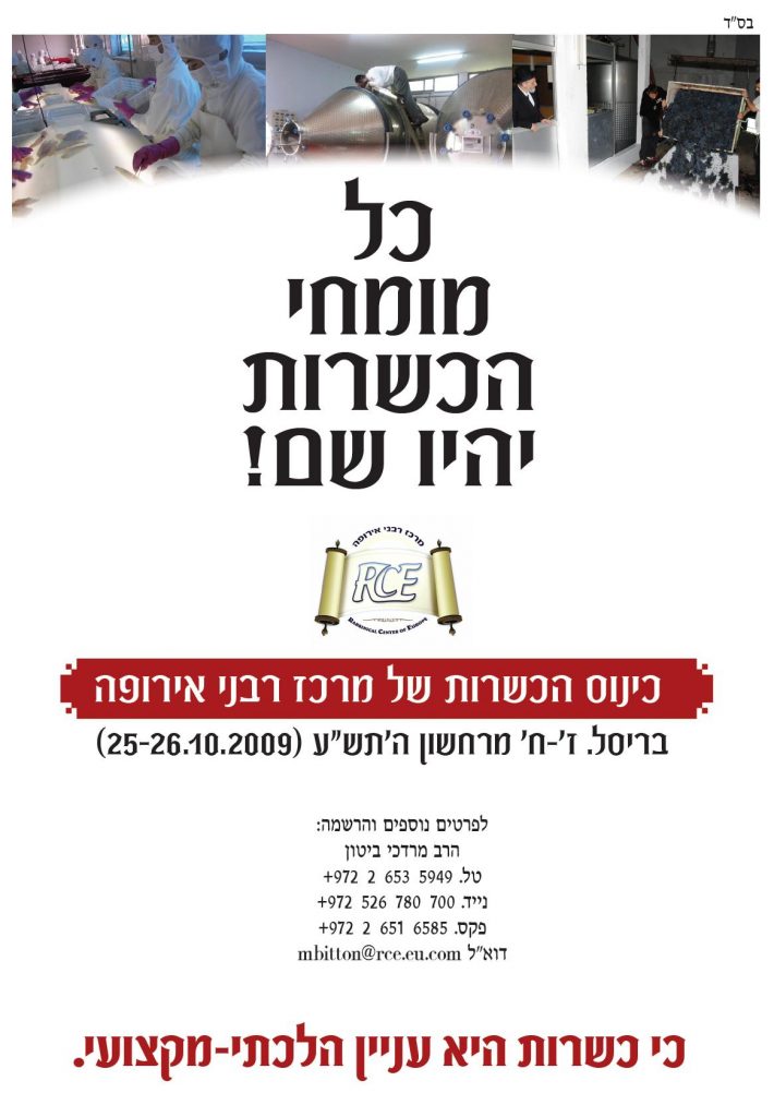 הננו שמחים לבשר לקהל הרבנים באירופה כי מייד לאחר חודש החגים הבעל"ט, בימים ראשון ושני, בתאריכים ז'-ח' מרחשון ה'תש"ע (25-26 באוקטובר 2009), יתקיים בבריסל, בירת האיחוד האירופי, כינוס הכשרות של מרכז רבני אירופה.
