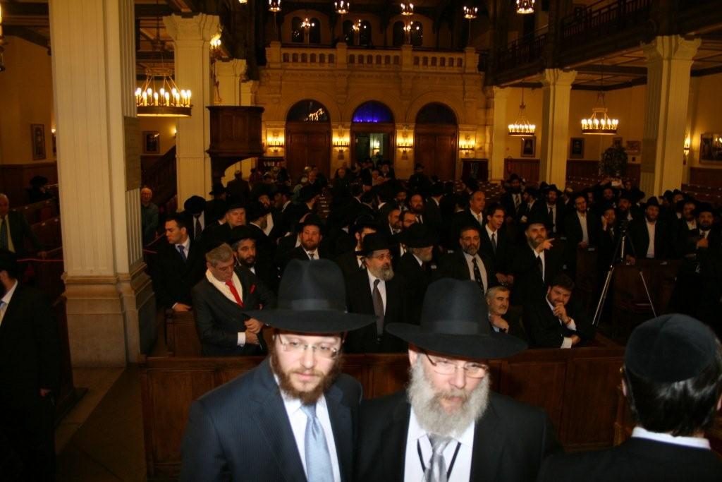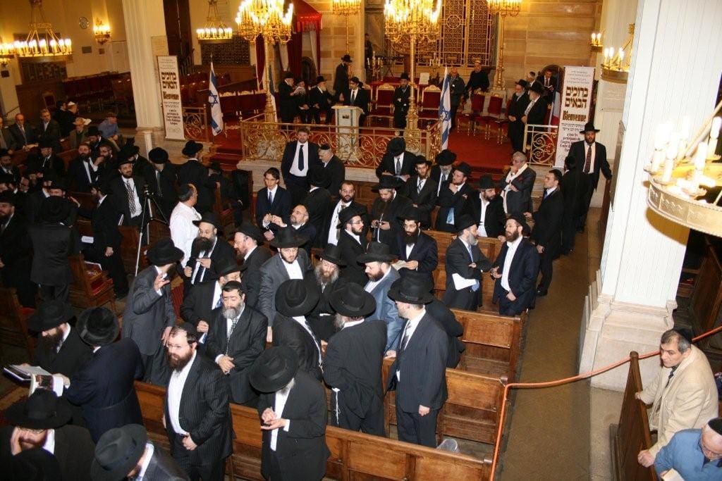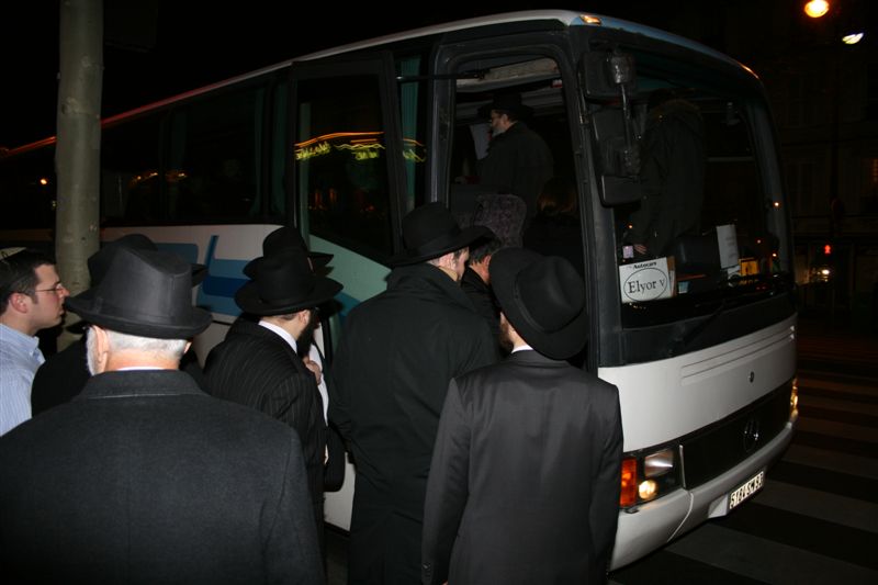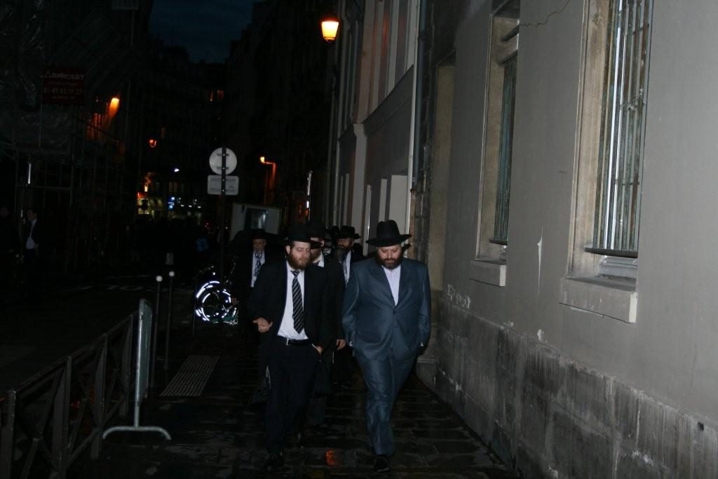 ביום השני של הכינוס (יום ג בשבת) לעת ערב, עם סיומו של יום הרצאות גדוש בדברי תורה וחכמה, יצאו הרבנים מהמלון לעבר בית הכנסת הספרדי הגדול והמפואר בפאריס. שיירת האוטובוסים שהסיעה את הרבנים לבית הכנסת לוותה באופנועי משטרה ובאטחה כבדה, תוך כדי סגירתם של כל הרחובות שבין רחוב בית המלון לרחוב בו ממוקם בית הכנסת, מה שעורר עניין רב בקרב העוברים והשבים אודות זהותם של הנוסעים בשיירה המכובדת.