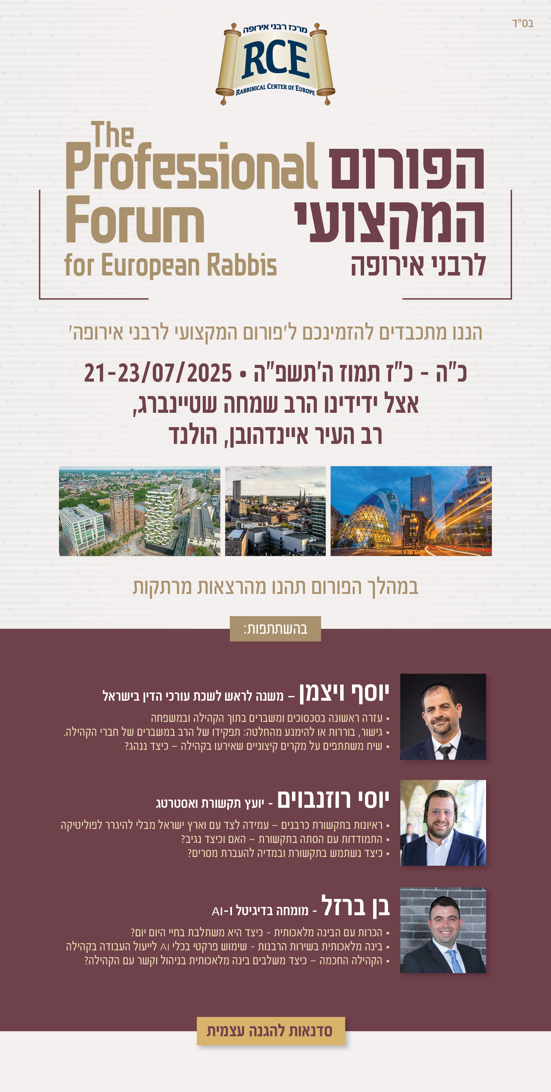 הפורום המקצועי לרבני אירופה – הולנד תשפה